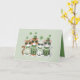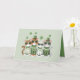This charming greeting card with its festive feline theme is purr-fect for celebrating St. Patrick's Day. The front of the card showcases four cats dressed festively in green sweaters and hats adorned with shamrocks. Each cat wears sunglasses, adding a playful and cool cat vibe to the scene. The background is a soft green, complementing the darker green elements of the cats' attire. Inside, the card continues the theme with a dark green colour that complements the front. The inside message reads, "Irish you a purr-fect St. Cat-tricks day!" making it a delightful pun-filled greeting for cat lovers, those with Irish heritage, and any St. Patrick's Day enthusiast. This card is ideal for sending warm wishes and a touch of humour to friends and family on this festive holiday.