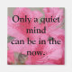 Beautiful pink flowers are in the background on this magnet and printed in black are the words "Only a quiet mind can be in the now."