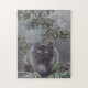 Puzzle featuring A Quiet Place by artist Michaeline McDonald of a black fluffy kitten looking up at a rainbowy spiderweb.