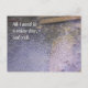 This postcard features a close up photo of raindrops falling into water, with moss and stones visible below the surface. It reads, "All I need is a rainy day, and you." Romantic, and sweet.