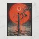 A raven with minimal colours of red and black in a tree scifi horror art AI generated art