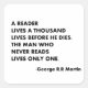 A reader lives a thousand lives before he dies, The nab who never reads lives only one, George R,R Martin