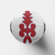 The design features a symmetrical red pattern on a white background. The design resembles a stylised plant or flame, with lobed shapes that taper towards the top. It consists of multiple curving elements that mirror each other along a vertical axis, creating an ornamental and decorative appearance.