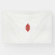 a red and brown design on a white background banner