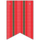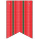 This design features a repeating pattern of red vertical stripes with intricate white floral designs inside them. The stripes are separated by thin green lines, adding contrast to the overall design.
