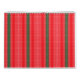 This design features a repeating pattern of red vertical stripes with intricate white floral designs inside them. The stripes are separated by thin green lines, adding contrast to the overall design.