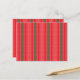 a red and green striped background postcard