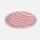 A red and pink geometric pattern featuring interlo paper plate