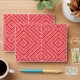a red and white background with a diamond pattern envelope