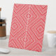 a red and white background with a diamond pattern pedestal sign