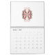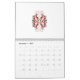 a red and white floral design on a white backgroun calendar