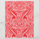 The design features a symmetrical, abstract pattern with intricate details. The design is predominantly red with black accents and has a kaleidoscopic effect due to its mirrored symmetry on both vertical and horizontal axes. The swirling shapes resemble floral or paisley elements, giving it an organic feel. It looks like it could be a tapestry or curtain, hanging from the top.