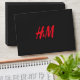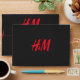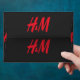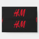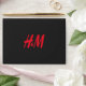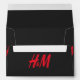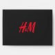 a red h and m logo on a black background envelope