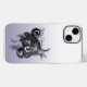 An abstract flower art photography iPhone case featuring the image "A Reflecting Elegance" by iPhone Style in shades of violet and white in a decorative art style.