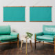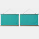 A rich teal green area highlighted by a contrastin hanging tapestry