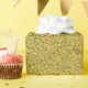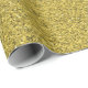 a roll of gold glitter wrapping paper partially unrolled to reveal its sparkly texture and rolled edge
