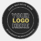 A round professional custom branded for your business features your logo design framed by the name of the company with location and year established. Other wording such as a slogan or website could also be included. There is an option to adjust the curve of the round text and the black and white colours under Personalise / Customise Further.