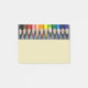 A row of pointy well sharpened coloured pencils sitting on a grey granite desk. A nice spectrum of colours from the rainbow. Blue, purple, green, yellow, orange, pink, red, brown and black.