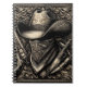 A rugged cowboy in a weathered hat, wielding guns notebook