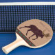 Personalise this now! From rustic country charm for the weekend cabin to rugged man cave, this walking moose personalised ping pong paddle is a fun gift idea. Set on a light tan background and border of chocolate brown and pine green, the bull moose design contains the distressed and grainy look that suggests actual leather, but it's not! It's just my transformation of my original moose drawing into these faux leather images. THIS PING PONG PADDLE IS PRINTED AND CONTAINS NO ACTUAL SUEDE OR HIDE.