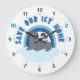 A seal and a penguin "Save Our Icy World" cartoon Large Clock