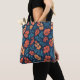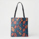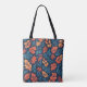 Vibrant autumn leaves in shades of orange, red, and blue on a dark background, creating a seamless floral pattern tote bag