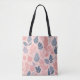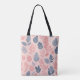A seamless pattern with various stylised leaves in shades of pink, grey, and white on a light pink background tote bag