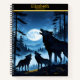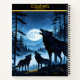 Under a tranquil night sky, a majestic wolf howls at the luminous full moon while two others join in harmony