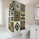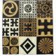 A set of japanese style seamless patterns, tribal and geometrical symbols, in a black and gold palette