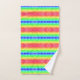 A set of towels displayed on a rod in vibrant rainbow colors with diamond patterns. Below is a folded washcloth showing the same design, evoking a lively mood.