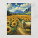 A Sheep in the Sunflower Field Faux Van Gogh Postcard