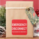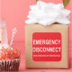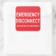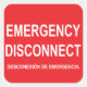 A sheet of six, 3" x 3" EMERGENCY DISCONNECT sticker labels with a Spanish subtitle for electricians. Desconexión de emergencia