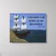 "A ship in harbour is safe but that is not what ships are built for" is a famous inspirational verse that inspires you to get out of your comfort zone or rut and explore, expand your horizons. Inspire and motivate yourself or a friend or loved one with this beautiful and unique design adapted from an original acrylic and mixed media collage on canvas, featuring a sailboat or tallship with large masts and sails, sitting in the harbour of a bay next to the sand.