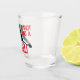 A shot glass for hockey lovers. Featuring the silhouette of a hockey player and text that reads 'A SHOT AND A GOAL!" The colour of text can be customised.