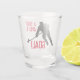 A shot glass for hockey lovers. Featuring the silhouette of a hockey player and text that reads 'A SHOT AND A GOAL!" The colour of text can be customised.
