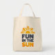 A sign that says fun on the sun tote bag