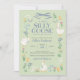 “Oh, you silly goose!” Celebrate the upcoming arrival with laughter and charm using this nursery rhyme-inspired baby shower invitation. Featuring soft green tones, gentle pops of blue, and sweet illustrations of playful geese and delicate florals, this invitation sets the perfect tone for a lighthearted, love-filled gathering.