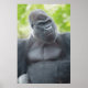 A powerful silverback gorilla gazes upward, his imposing figure set against a vibrant backdrop. The Silverback resides at Twycross Zoo and may also be familiar from the SloggerVlogger channel.