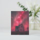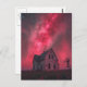 A single abandoned house with the pink night sky postcard