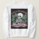 A cartoon skeleton sits cross-legged on a pink surface, surrounded by various potted plants. The skeleton is holding a small succus