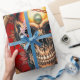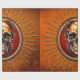 A skull whose presence inspires both awe and fascination. Its skull is marked by time, bearing a radiant treasure in its centre, a gemstone that pulsates with shimmering colours and holds the secret of life and death. The skull's eye sockets glow like two glowing coals, bright red and piercing, as if they could see the deepest secrets of the soul. A wreath of filigree leaves, whose green veins contrast with the pale bone. This living embrace symbolises the eternal cycle of life and death, while an artfully crafted chain encircles it - a sign of the inseparable connection between the worlds.