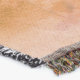 A quality printed throw has its advantages. This is a much finer weave throw than its loopier cousins, and though lighter, it is worth the investment for custom room accessorizing. The back is much prettier than the typical brown, and the fringe on the long sides very vivid, the selvage nicely done. Before photographing, I washed the throw in cold water, delicate, with a thicker woven throw the same size. On tumble dry low, this throw was dry in half the time as the other. This is a very practical quality if you use throws for furniture covers or to wrap up in frequently. The sleekness of the fabric makes it a great layer for accenting or protecting without the feeling of sitting on too much stuff. Perfect for napping or when you feel a light chill coming on. The color printing is beautiful and on this fabric, matched the design and color of my Photoshop image. This is an advantage for blending room fabrics and colors. The fringe on the short sides prints the colors from the design image and therefore varies from the side fringe. I streaked a white fractal line through the plaid pattern to give the illusion of weaving. This printed as crisp as an illusory thread, and put some white in the short side fringe, showing another advantage of print vs loomed- for artistic purposes, line lines, detail, and color integrity can be planned and preserved. My loomed throws have color limitations and more of a needlepoint texture. Print throws reproduce an exact image. The throw felt a little stiff straight out of the package, but this went away in the first delicate wash. Of course I searched the wash water for ink or bleeding and there was none.