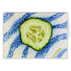A pencil and pen drawing of a slice of a cucumber on a tablecloth.