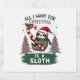 A Sloth For Christmas. Cute, Christmas Sloth With Sparkling Wine Label