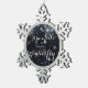 Beautiful black and white wintery design. Black background, white snowflakes and saying "a snowflake is winter's butterfly."