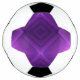 A soccer ball with a unique geometric purple