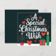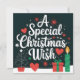 A Christmas design with the text "A Special Christmas Wish". There is a snowy landscape with a Christmas tree, a present, and a candle. There are also stars and hearts.