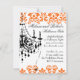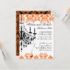 orange and black with a custom spider bedecked chandelier create a fashionable invitations for you Halloween gala