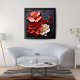 This stunning artwork features a vibrant bouquet of red and white flowers, including peonies, roses, poppies, and dahlias, against a dramatic black background. The bold colours and realistic details create a captivating focal point that is sure to enhance any room. This beautiful floral design is available on a variety of products, making it the perfect way to add a touch of elegance to your home or office.