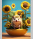 Picture this adorable sight: a cuddly hedgehog nestled amidst a vibrant patch of sunflowers, its quills forming a halo around its roly-poly body. The hedgehog's warm, earthy tones blend harmoniously with the bright yellow and rich brown centres of the sunflowers, creating a scene that radiates pure cheerfulness.